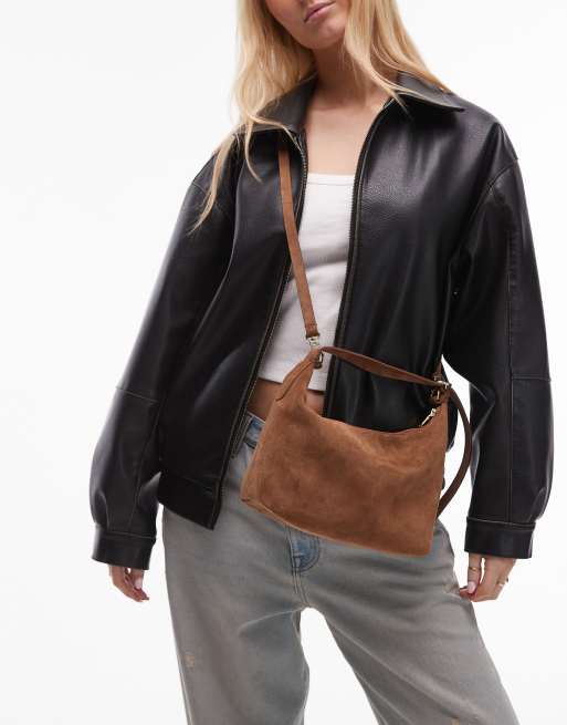 ARKET - Kleine suède leren tote tas met afneembare crossbody band in bruin