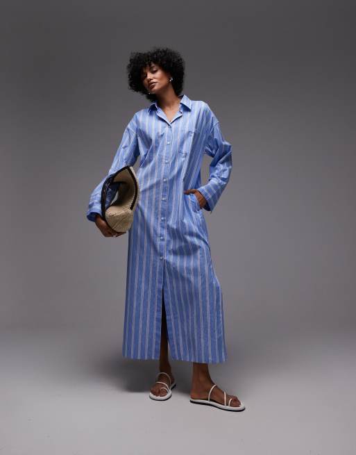 ARKET - Lange overhemdjurk van zuiver katoen met panelen aan de mouwen en zijsplitten in blauw