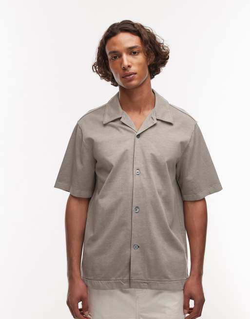 ARKET - Overhemd van zuiver katoenen jersey met korte mouwen in grijs