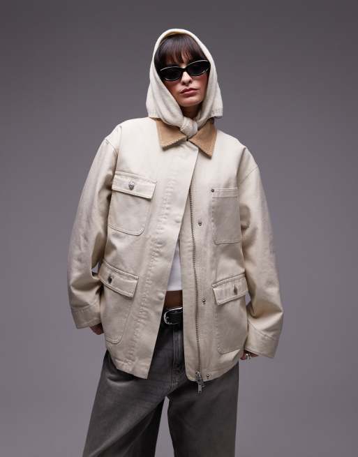 ARKET - Oversized workwear jack met utility zakken en contrasterende kraag in gebroken wit