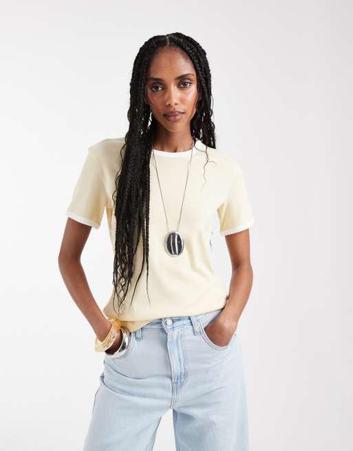 ARKET - Slim-fit geribbeld T-shirt met randje in lichtgeel