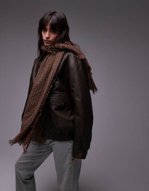 ARKET - Superzachte oversized losgeweven wollen sjaal met ruiten in bruin