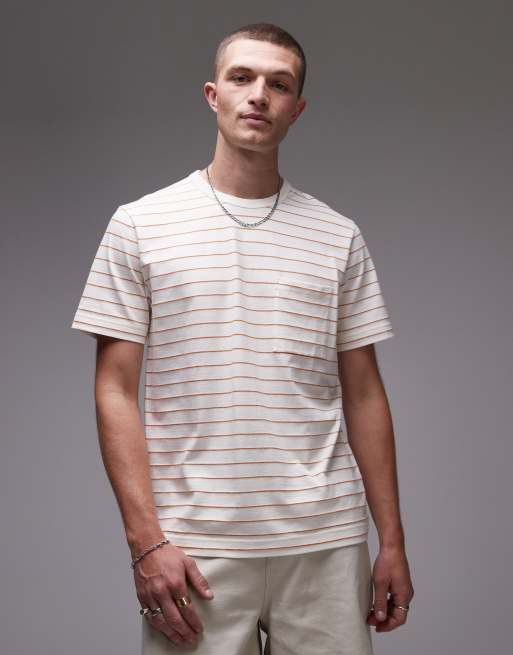 ARKET - T-shirt van katoen met korte mouwen en zakje in witte en oranje strepen