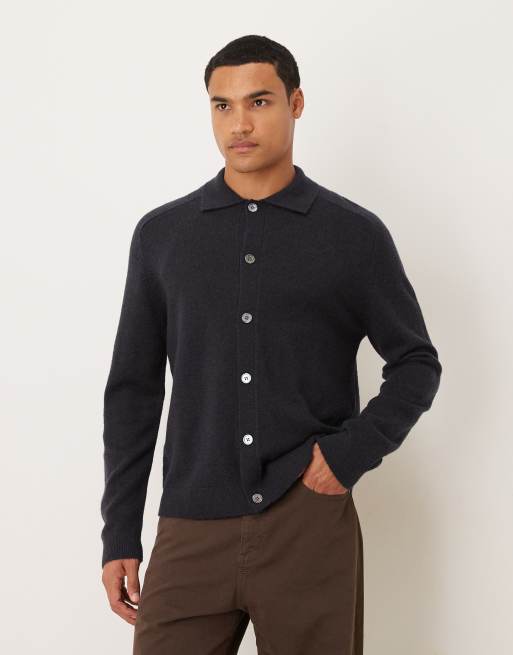 ARKET - Vest van zuiver wol met knoopsluiting aan de voorkant en polokraagje in marineblauw