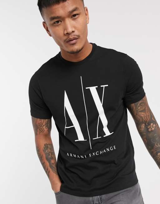 Armani Exchange - AX Icon - T-shirt met groot logo in zwart