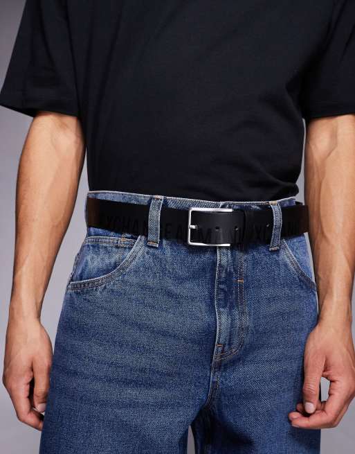 Armani Exchange - Leren riem met logo in zwart