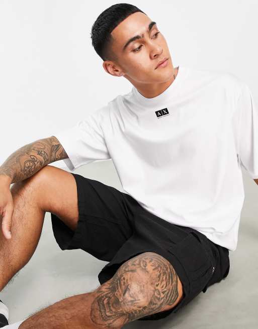 Armani Exchange - Oversized T-shirt met verlaagde schouders en klein logo in wit