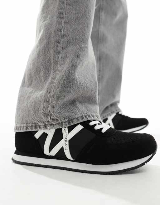 Armani Exchange - Sneakers met groot logo in zwart en wit