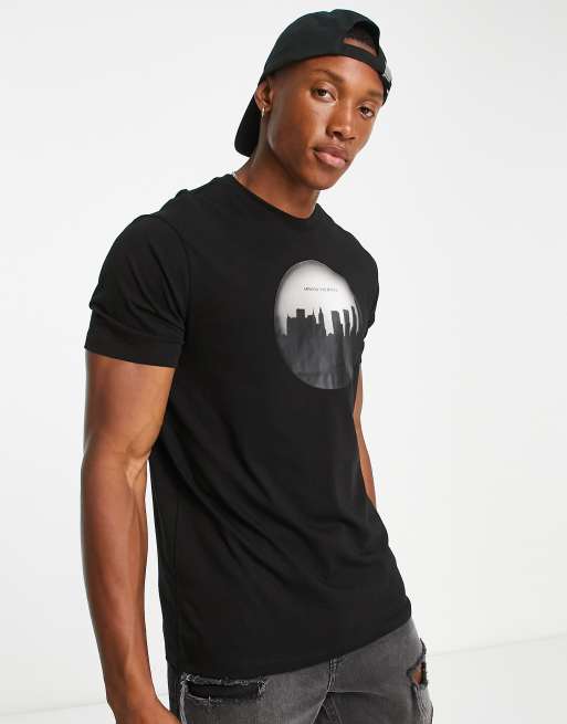 Armani Exchange - T-shirt met ronde stadsprint in zwart