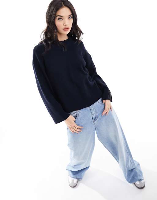Armani Exchange - Trui van jacquard met logo in marineblauw
