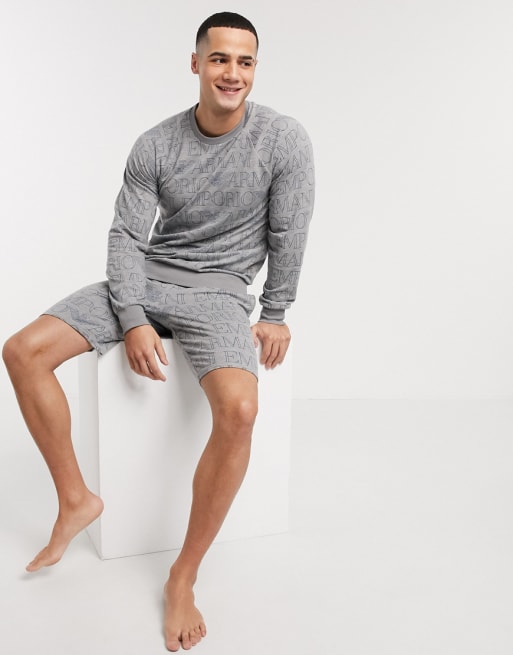 Emporio Armani - Sweater and short met tekstprint in grijs, combi-set