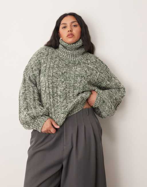 ARRANGE - Curve - Hoogsluitende gebreide trui met kabels en gedraaid garen in groen en crème