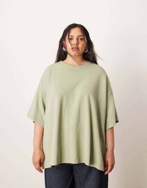 ARRANGE Curve - Premium - Oversized T-shirt van zware jersey met textuur in pistache, deel van co-ord set