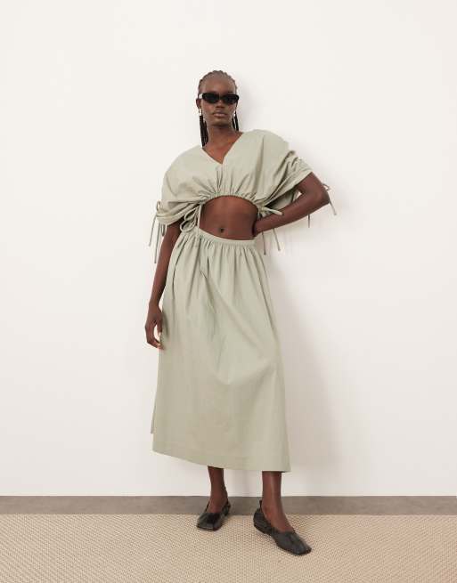 ARRANGE - Diepuitgesneden top met rimpeleffect in saliegroen, deel van co-ord set