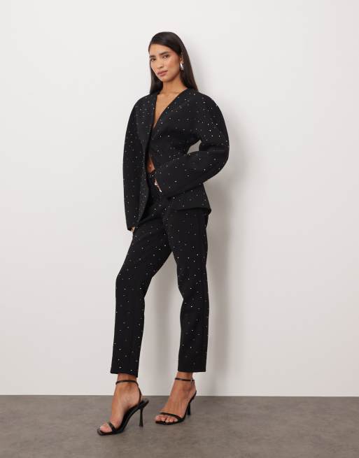 ARRANGE - Elegante broek met siersteentjes en smalle pijpen in zwart, deel van co-ord set