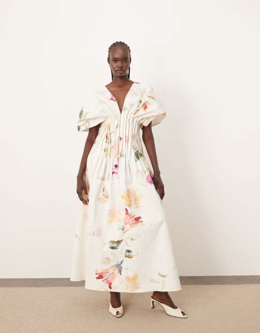 ARRANGE - Maxi-jurk met ingenomen geplooide taille in bloemenprint
