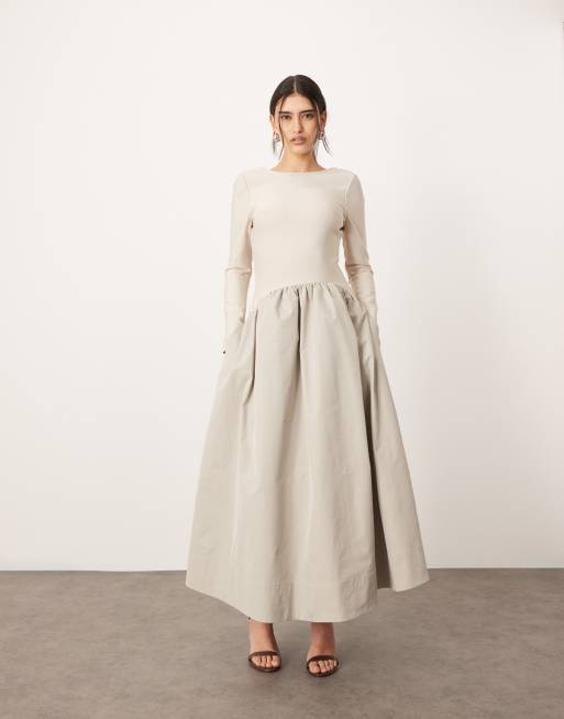 ARRANGE - Maxi-jurk met lange mouwen, verlaagde taille en contrasterende rok in zilvergrijs
