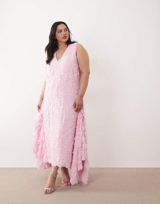 ARRANGE - Maxi jurk met textuur en vierkante details in roze