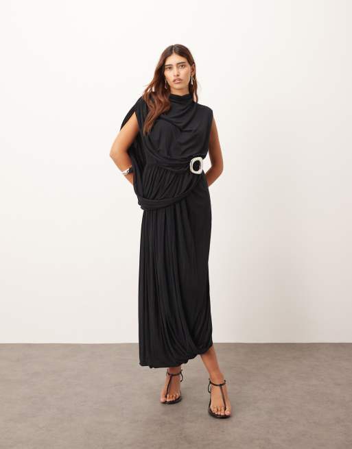 ARRANGE - Mouwloze midi jurk met gedrapeerde zoom en gespdetail in zwart