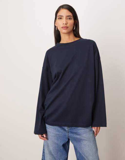 ARRANGE - Oversized T-shirt van katoen met lange mouwen in marineblauw