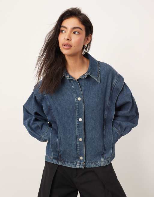 ARRANGE - Rechte denim shacket met plooidetail in middenblauw