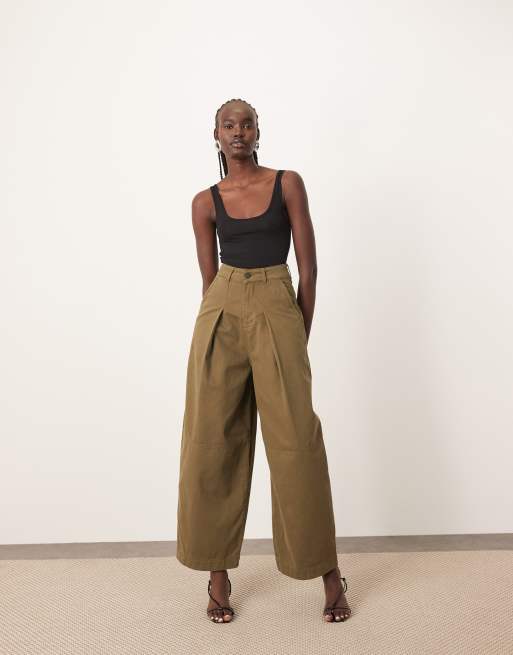 ARRANGE - Remi - Casual broek van keperstof met wijde ronde pijpen in olijfgroen