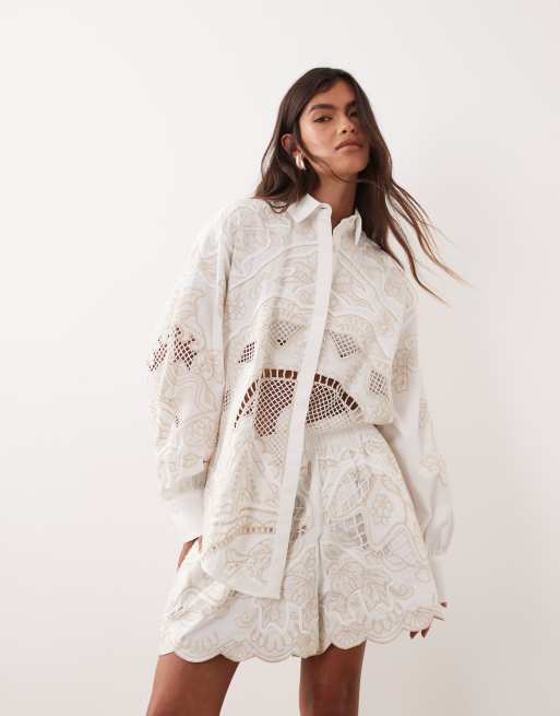 ARRANGE - Short met borduursel in wit, deel van co-ord set