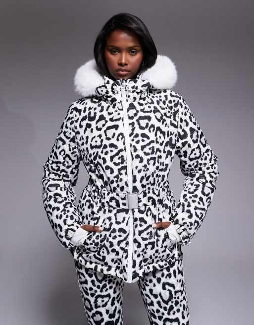 ASOS 4505 Ski - Icon waterafstotende geïsoleerde ski-jas met riem in sneeuwluipaard