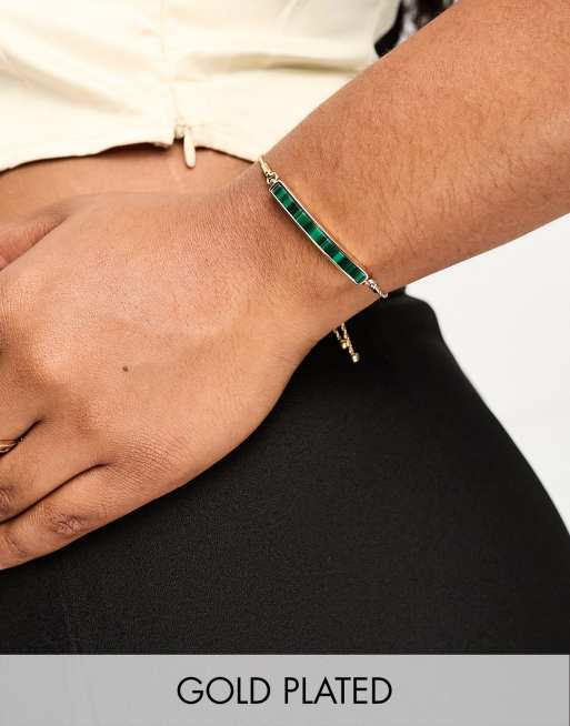 ASOS DESIGN Curve - 14k vergulde armband met emaillen staafje in malachietstijl
