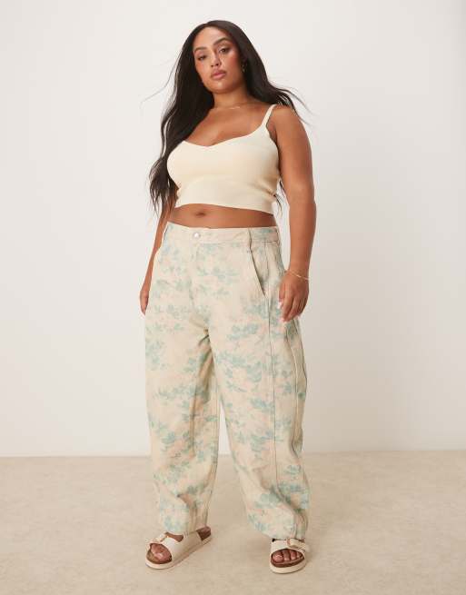 ASOS DESIGN Curve - Broek met naden en wijde ronde pijpen in bloemenprint