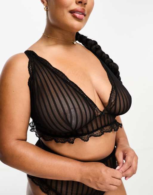 ASOS DESIGN Curve - Brooke - Bralette met lange pasvorm van geribbeld mesh in zwart