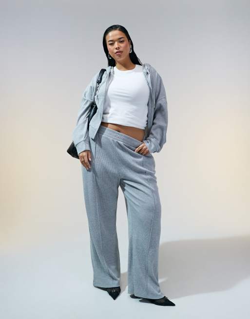 ASOS DESIGN Curve - Co-ord set van wafelstof met hoodie en joggingbroek in gemêleerd grijs