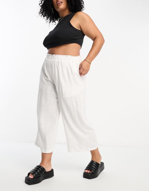 ASOS DESIGN Curve - Culottes van linnenmix in gebroken wit