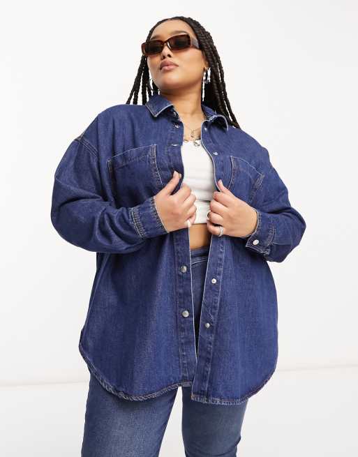 ASOS DESIGN Curve - Denim oversized overhemd in blauw
