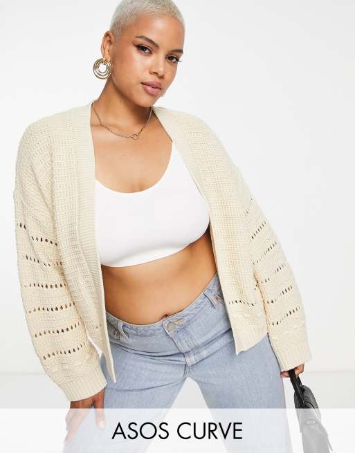 ASOS DESIGN Curve - Gehaakt, opengewerkt open vest in crème