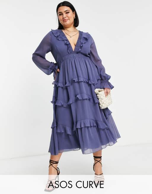 ASOS DESIGN - Curve - Gelaagde midi jurk met ruches, elastische taille en gestrikte veters aan de achterkant