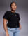 ASOS DESIGN - Curve - Geribbelde top met structuur, pofmouwen en knoopsluiting in zwart