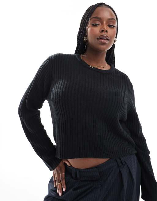 ASOS DESIGN Curve - Geribbelde trui met ronde hals in zwart
