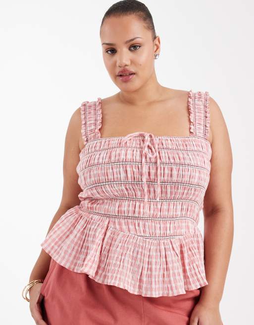 ASOS DESIGN Curve - Gesmokt hemdje met brede bandjes en gingham ruit