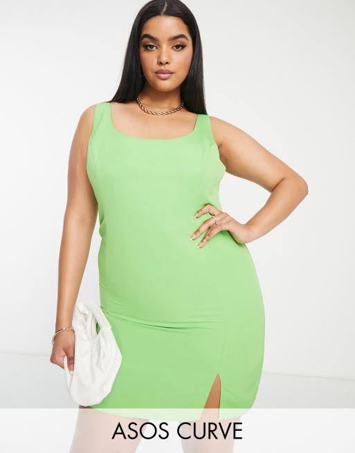 ASOS DESIGN Curve - Gestructureerde mini jurk met lage ronde hals en splitjes in groen