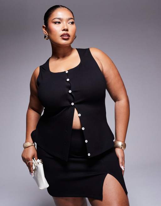 ASOS DESIGN Curve - Gilet van premium pontestof met lange pasvorm in zwart
