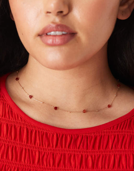 ASOS DESIGN Curve - Halsketting in goudkleur, fijne schakels en hartvormige halfedelstenen in rood