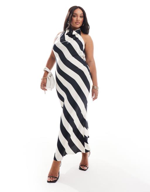 ASOS DESIGN Curve - Hoogsluitend midi jurk met gedrapeerde halslijn en opvallende zwart-witte strepen