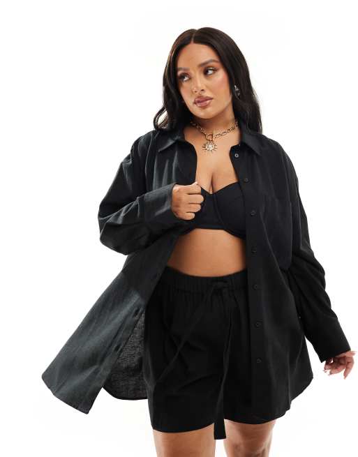 ASOS DESIGN Curve - Isabel - Mix en match - Oversized strandoverhemd met linnenlook in zwart