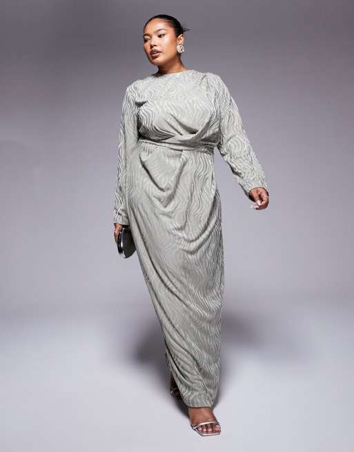 ASOS DESIGN Curve - Jacquard maxi-jurk met lange mouwen in kaki groen