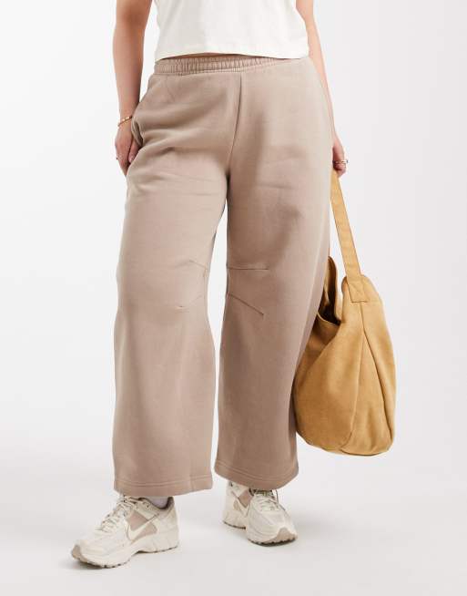 ASOS DESIGN Curve - Joggingbroek van geborstelde stof met barrel-pijpen in mokka taupe