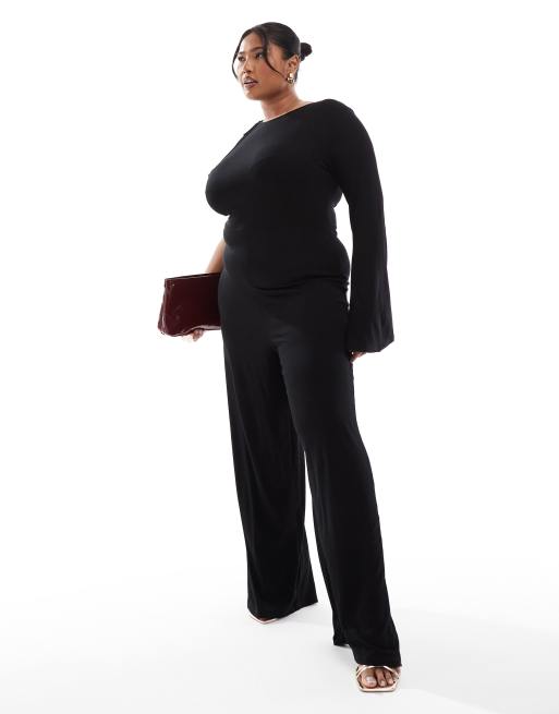 ASOS DESIGN Curve - Jumpsuit met wijde, enkele mouw en gestrikt schouderbandje in zwart