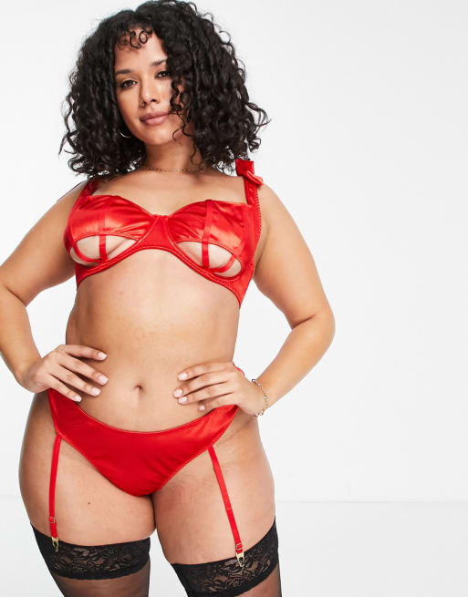 ASOS DESIGN Curve - Kerstmis - Satijnen lingerieset van bh met beugel en onderbroek