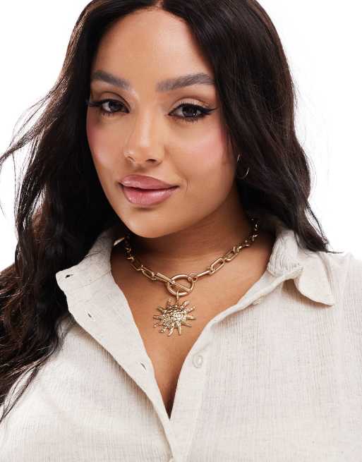 ASOS DESIGN Curve - Ketting met T-staafje en zonhangertje in goudkleur