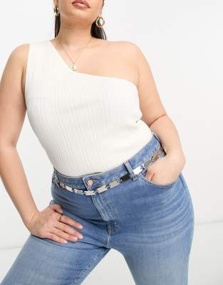 ASOS DESIGN Curve - Kettingriem met rechthoekige schakels in zilver